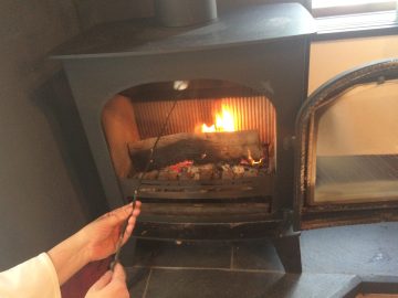 会場は薪ストーブのあるカフェで。